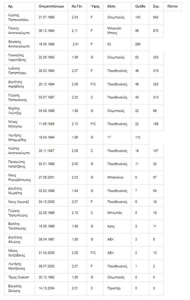 Αντίθετα, εκτός όπως ήταν γνωστό εδώ και μέρες έμειναν οι Κώστας Σλούκας, Νικ Καλάθης και Τάιλερ Ντόρσεϊ.
