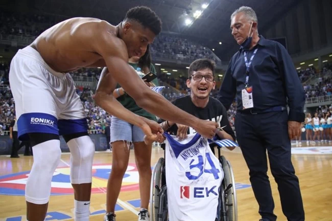 Η Εθνική Ελλάδος μπάσκετ επικράτησε εύκολα του αντιπροσωπευτικού συγκροτήματος του Βελγίου με τελικό σκορ 85-68, με τον Γιάννη Αντετοκούνμπο να δίνει τη δική του παράσταση όχι μόνο κατά τη διάρκεια του αγώνα αλλά και μετά τη λήξη του. Ο Greek Freak χάρισε τη φανέλα του σε ένα παιδί με ειδικές ανάγκες.