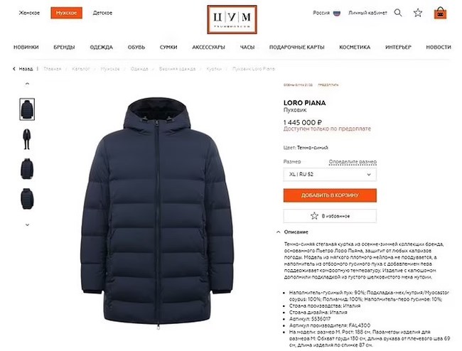 Πολύ λίγη ώρα μετά την εμφάνισή του που προκάλσε πάμπολλες συζητήσεις είτε επειδή διακόπηκε απότομα είτε για τα πλήθη που συγκεντρώθηκαν, δημοσιογράφοι της αγλλόφωνης Moscow Times έκαναν την αποκάλυψη πως το μπουφάν του Πούτιν είναι της πολυτελούς ιταλικής μάρκας prêt-à-Porter Loro Piana και πως η τιμή του φτάνει τις 10.000 ευρώ.