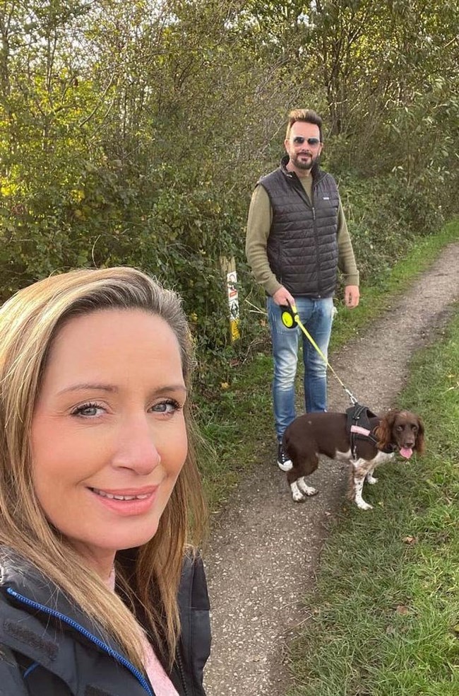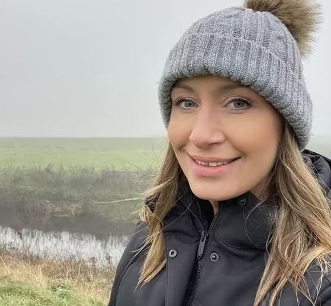 Στη συνέχεια, φορώντας ένα μακρύ μπουφάν, κολάν και μποτάκια, με τα μαλλιά της δεμένα αλογοουρά, πάρκαρε το αυτοκίνητό της και ξεκίνησε τη βόλτα με τον σκύλο της στην όχθη του ποταμού Γουάιρ, στο Λάνκασιρ.