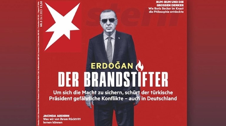 Στη στάση του Τούρκου προέδρου ενόψει των εκλογών του Μαΐου αναφέρεται σήμερα το περιοδικό Stern, το οποίο κυκλοφορεί με τον Ταγίπ Ερντογάν στο εξώφυλλο και με τίτλο "Ερντογάν, ο Εμπρηστής".