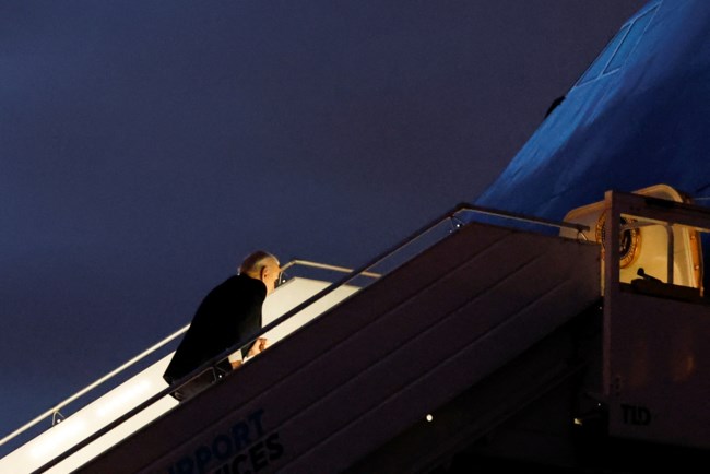 Το βίντεο δείχνει τον Μπάιντεν να πέφτει κοντά στην κορυφή της σκάλας στην πίστα του αεροδρομίου. Μόλις ανέκτησε την ισορροπία του, έκανε ένα νεύμα και έσπευσε να μπει στο αεροσκάφος. Παραμένει ασαφές τι μπορεί να προκάλεσε το νέο... ατύχημα του Μπάιντεν στα σκαλιά.