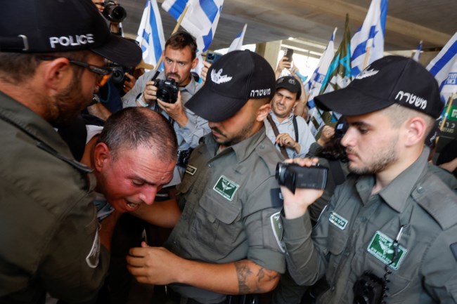 Παράλληλα, εκατοντάδες αντικυβερνητικοί διαδηλωτές συγκεντρώθηκαν σήμερα έξω από το διεθνές αεροδρόμιο Μπεν Γκουριόν του Τελ Αβίβ και ορισμένοι επιχείρησαν να σπάσουν τον αστυνομικό κλοιό για να εισέλθουν στον κύριο τερματικό σταθμό, με αποτέλεσμα να προκληθούν επεισόδια.
