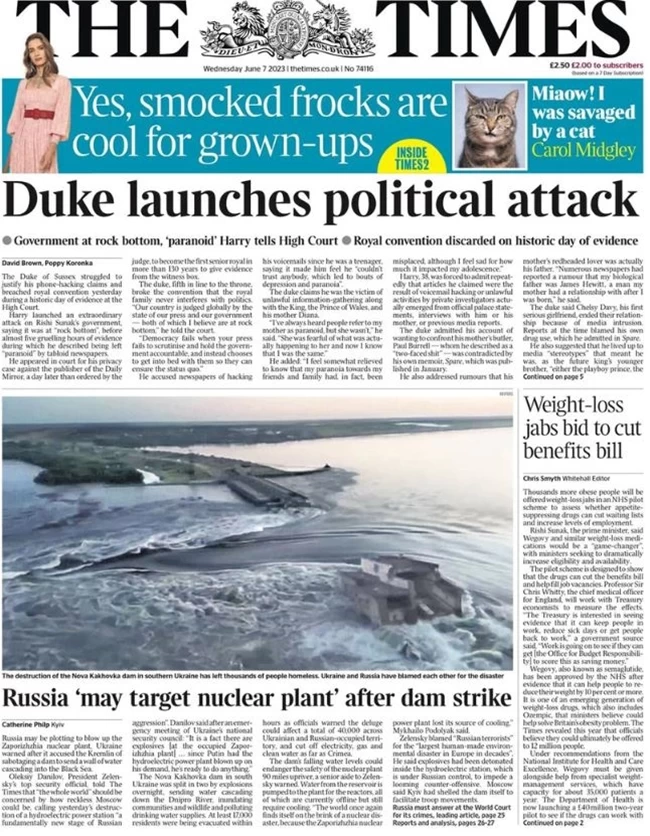 Η Daily Mirror στο σημερινό της πρωτοσέλιδο, έχει έναν συγκρατημένο τίτλο για τη δίκη με ενάγοντα τον Χάρι που όμως θέτει το ζήτημα ως μια συνολική επίθεση του πρίγκιπα κατά του Τύπου.