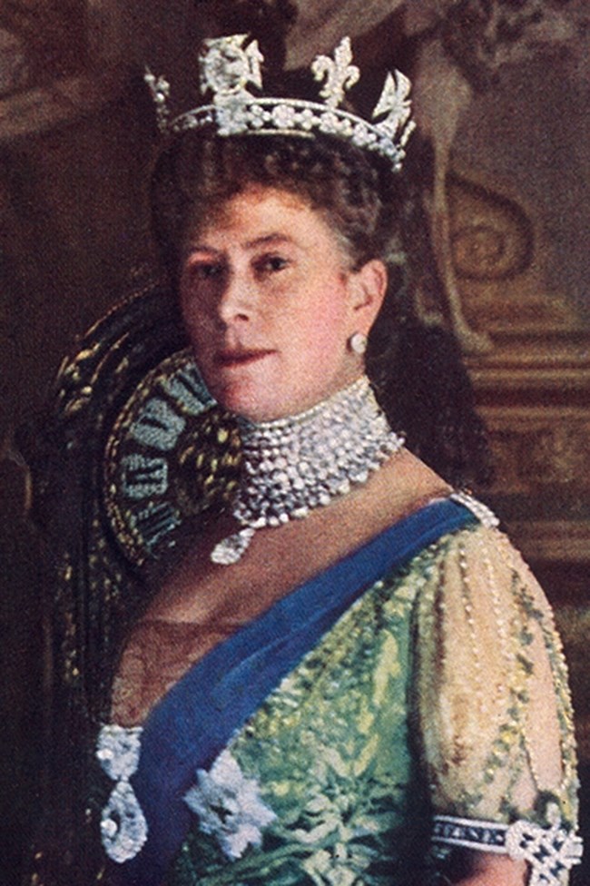 Η κορώνα κατασκευάστηκε ειδικά για αυτήν το 1911, με 2.200 μικρά και τρία μεγάλα, πολύτιμα διαμάντια. Τα δύο από αυτά είναι διαμάντια Cullinan. Τα διαμάντια Cullinan πήραν το όνομά τους από τον ιδιοκτήτη του ορυχείου της Νοτίου Αφρικής όπου ανακαλύφθηκαν, τον Τόμας Κάλιναν. Αυτό που ανακαλύφθηκε στις 26 Ιανουαρίου 1905 ήταν ένα τεράστιο ακατέργαστο διαμάντι, το μεγαλύτερο που βρέθηκε ποτέ. Ήταν 3.106 καρατίων (621,20 γρ). Λίγους μήνες αργότερα, τον Απρίλιο του 1905 μεταφέρθηκε στο Λονδίνο, αλλά παρά το μεγάλο ενδιαφέρον, παρέμεινε απούλητο για δύο χρόνια. Το 1907, ο Λούις Μπόθα πρωθυπουργός του Τράνσβααλ, επαρχίας της Νότιας Αφρικής, το παρουσίασε στον Εδουάρδο Η'. Το ακατέργαστο διαμάντι Cullinan κόπηκε για πρώτη φορά από τον οίκο Joseph Asscher & Co στο Άμστερνταμ.