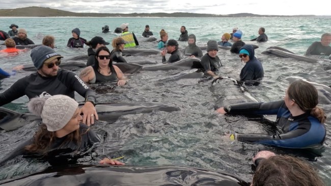 Η υπηρεσία πάρκων και πανίδας της πολιτείας της δυτικής Αυστραλίας δήλωσε ότι εργάζεται με εθελοντές στην προσπάθεια να σώσει τα δελφίνια που είναι ακόμη ζωντανά και πως προβλέπει να τα οδηγήσει σε πιο βαθιά νερά στη διάρκεια της ημέρας.