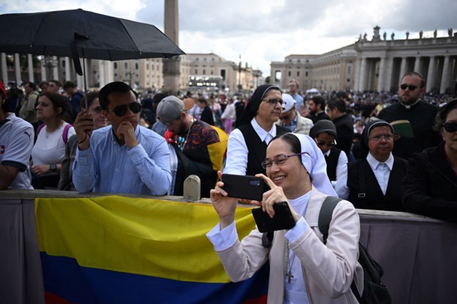 Χιλιάδες πιστοί γεμίζουν την πλατεία του Αγίου Πέτρου σε κλίμα ενθουσιασμού και προσμονής.