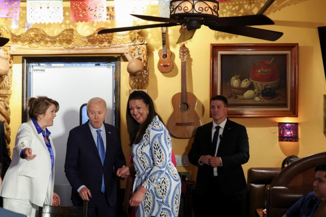 Η αυτοκινητοπομπή των 20 οχημάτων έφτασε σε ένα φημισμένο μεξικάνικο εστιατόριο στο κέντρο του Λας Βέγκας. Ήταν 1 το μεσημέρι. Οι δημοσιογράφοι μπήκαν μέσα στο εστιατόριο βιαστικά, ώστε να βρίσκονται εκεί και να καταγράψουν την είσοδό του. Ο Μπάιντεν αναμενόταν να μπει από την πίσω πόρτα, από την κουζίνα. Οι φωτογράφοι είχαν σηκώσει τις κάμερες, έτοιμοι για νέα πορτρέτα του προέδρου. Αλλά εντελώς ξαφνικά, οι άνδρες των Μυστικών Υπηρεσιών ύψωσαν μια πετσέτα και κάλυψαν το άνοιγμα του παραθύρου προς την κουζίνα.