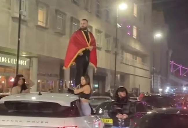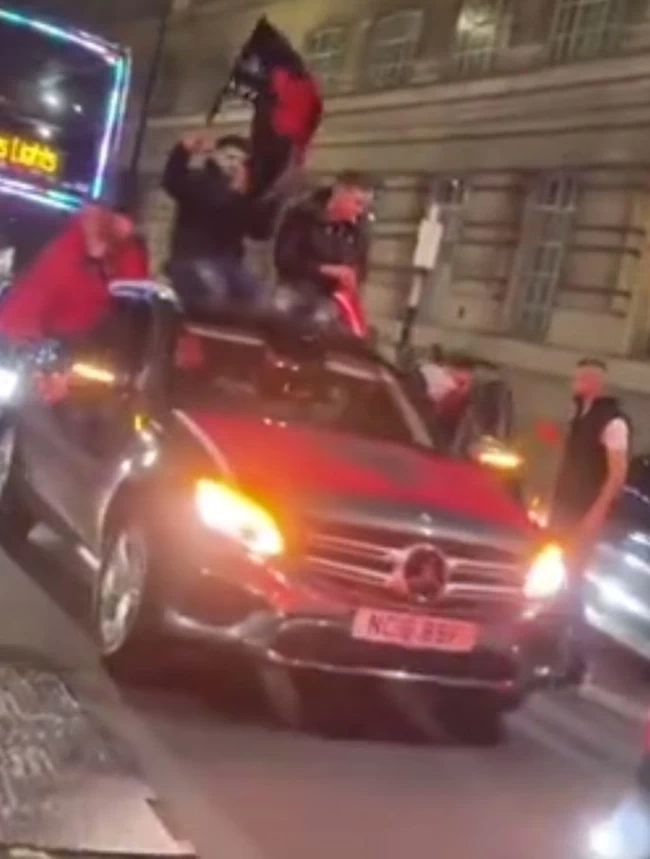 Οι νεαροί και νεαρές που έστησαν αυτή την αρκετά προκλητική γιορτή είχαν τυλίξει με αλβανικές σημαίες τα αυτοκίνητά τους και βγήκαν στους δρόμους του κεντρικού Λονδίνου, στην περιοχή του Ουέστμινστερ όπου βρίσκεται το βρετανικό κοινοβούλιο και τα Ανάκτορα του Μπάκιγχαμ, κορνάροντας και τραγουδώντας ενώ κρέμονταν έξω από τα παράθυρα ή σκαρφάλωναν στις οροφές τους.