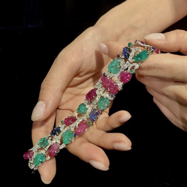 Ένα από τα εμβληματικά σχέδια του οίκου Cartier, ένα μπρασελέ Tutti Frutti, συνδυασμός διαμαντιών και σμάλτου πουλήθηκε έναντι 1,3 εκατομμυρίων δολαρίων σε δημοπρασία του οίκου Sotheby's.