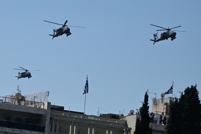 Για πρώτη φορά εμφανίστηκαν στην παρέλαση της 25ης Μαρτίου τα νέα αποκτήματα της χώρας, τα μαχητικά F-16 Viper, τα οποία πέταξαν πάνω από τον ουρανό της Αθήνας πίσω από τα Rafale. Στην συνέχεια ακολούθησαν τα ελικόπτερα Απάτσι και τα ελικόπτερα Σινούκ.