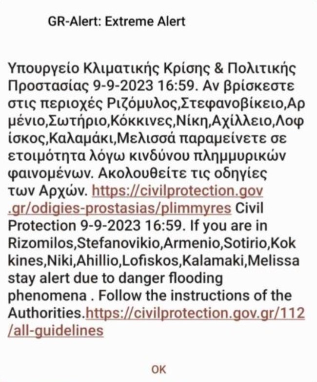 🆘 Αν βρίσκεστε στις περιοχές #Κάτω_Ραψάνη #Τέμπη #Ιτέα #Γόννοι #Μακρυχώρι #Ευαγγελισμός παραμείνετε σε ετοιμότητα λόγω κινδύνου πλημμυρικών φαινομένων