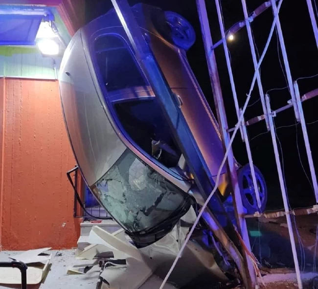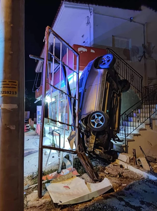 Σύμφωνα με τις πρώτες πληροφορίες, ο οδηγός του οχήματος, για άγνωστο λόγο, έχασε το έλεγχο του ΙΧ του για άγνωστο λόγο, με αποτέλεσμα το όχημα να καταλήξει "όρθιο" στην είσοδο καταστήματος.