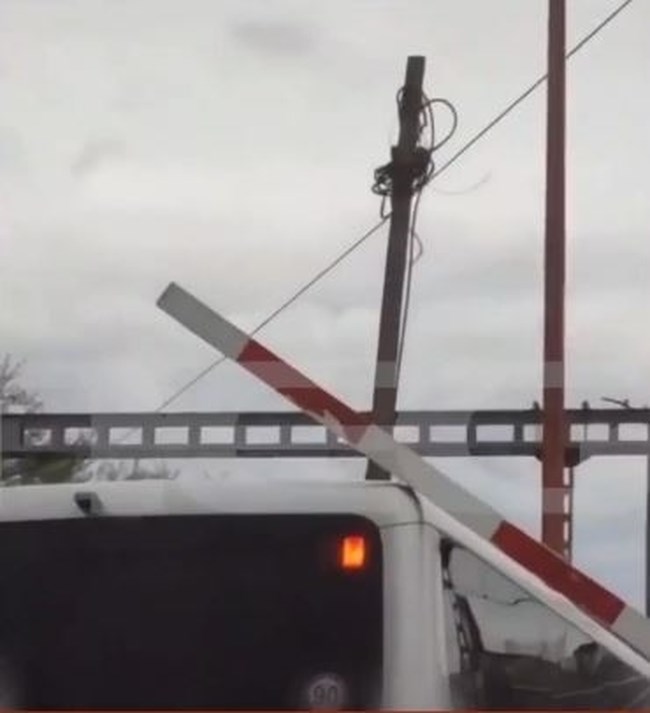 Στο συγκεκριμένο σημείο υπάρχουν δύο υπάλληλοι οι οποίοι πάτησαν το μπουτόν για να κατεβεί η μπάρα, όμως το λεωφορείο εγκλωβίστηκε.