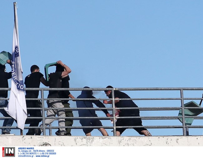 Οι Αρχές εικάζουν ότι όχι μόνο πρωταγωνιστούσε στα έκτροπα, αλλά ότι ήταν και αυτός που φαίνεται σε φωτογραφίες να επιτίθεται, κρατώντας στο χέρι του ένα αιχμηρό αντικείμενο, ενδεχομένως μαχαίρι ή κατσαβίδι, σε οπαδό της ΑΕΚ που κείτεται πεσμένος στο έδαφος.