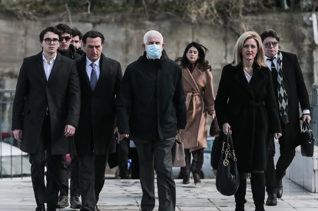Ο Πέτρος Φιλιππίδης άκουσε την απόφαση του δικαστηρίου ψύχραιμος. Δίπλα του βρίσκονται η σύζυγός του, Ελπίδα Νίνου, ο γιος τους και συγγενείς τους.