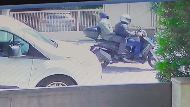 Το δίτροχο κινείται με κατεύθυνση την Λ. Ποσειδώνος, φαίνεται να στρίβει δεξιά προς Πειραιά, όπως αποτυπώνεται σε κάμερες ασφαλείας καταστημάτων επίπλων και ταχυφαγείου.