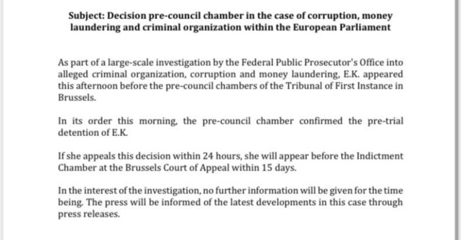 She has the right to appeal this decision. #QatarGate #MoroccoGate pic.twitter.com/LmqQDPfvhV
