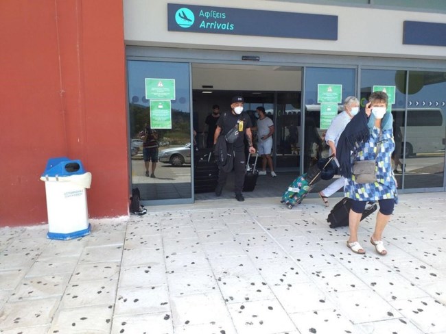 Οι πρώτοι Βρετανοί τουρίστες στο νησί, ελέγχονται δειγματοληπτικά με βάση τις ενδείξεις που προκύπτουν από το ειδικό barcode το οποίο έλαβαν με τη συμπλήρωση της φόρμας PLF. Σημειώνεται πως οι Κερκυραίοι υποδέχθηκαν το αεροπλάνο που μετέφερε τους βρετανούς τουρίστες, με αψίδες νερού.