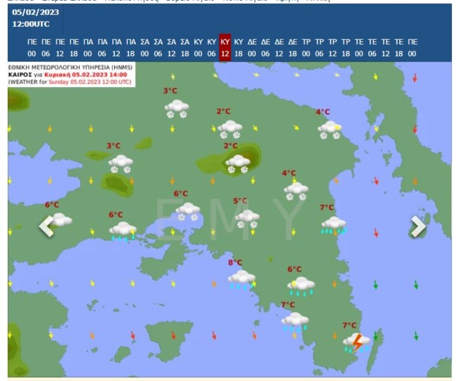Η ΕΜΥ προβλέπει για την ερχόμενη Κυριακή τοπικές βροχές στα δυτικά και βόρεια και χιόνια στα ορεινά - ημιορεινά της βόρειας χώρας, με πρόσκαιρη εξασθένηση των φαινομένων από το μεσημέρι.
