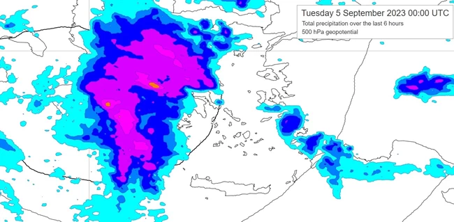 Επιδείνωση θα παρουσιάσει ο καιρός στη χώρα μας από τη Δευτέρα 4-9-2023 έως την Τετάρτη 6-9-2023 με ισχυρές βροχές και καταιγίδες που θα συνοδεύονται από χαλαζοπτώσεις και μεγάλη συχνότητα κεραυνών, με ενισχυμένους ανέμους και αισθητή πτώση της θερμοκρασίας.