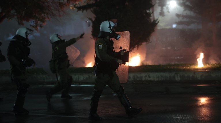 Τα ανωτέρω άτομα εκδήλωσαν επιθέσεις σε βάρος αστυνομικών στην Πλατεία Κάνιγγος και στη συμβολή των οδών Ναυαρίνου και Αραχώβης με ρίψεις μολότοφ, πετρών και άλλων αντικειμένων, με τις διατεθειμένες αστυνομικές δυνάμεις να κάνουν χρήση των αναγκαίων μέσων.