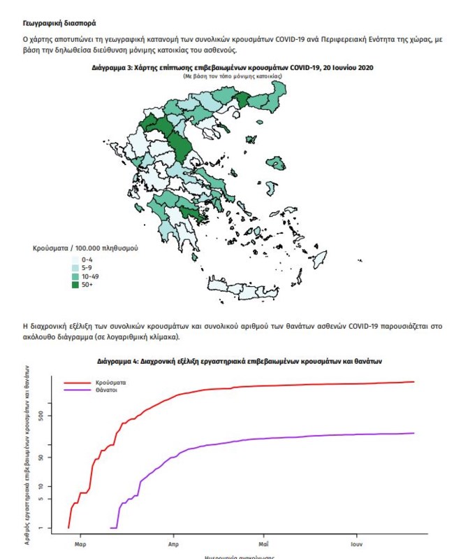 Από το σύνολο των 3.256 κρουσμάτων, 716 (22.0%) θεωρούνται σχετιζόμενα με ταξίδι από το εξωτερικό, 1.822 (56.0%) είναι σχετιζόμενα με ήδη γνωστό κρούσμα και τα υπόλοιπα δεν σχετίζονται ούτε με ταξίδι ούτε με άλλο γνωστό κρούσμα ή είναι ακόμα υπό διερεύνηση.