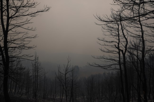 Όπως ο ίδιος σημειώνει, "η φωτιά έχει μπει σχεδόν μέσα σε όλα τα χωριά και έχει πάρει κατεύθυνση προς το Προκόπι". Επιπροσθέτως, αναφέρει πως "κάτοικοι αντιμετωπίζουν αναπνευστικά προβλήματα από τους πολλούς καπνούς και την αποπνικτική ατμόσφαιρα και τους μεταφέρουμε στο Κέντρο Υγείας Προκοπίου, μιας και το Κέντρο Υγείας στο Μαντούδι έχει κλείσει μετά τη διαταγή για την εκκένωση της περιοχής".