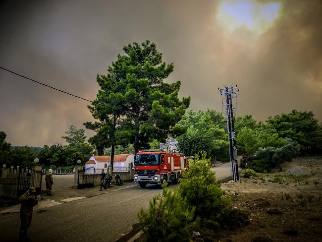Στην πυρκαγιά της Ρόδου, οι πυροσβέστες πάλευαν όλο το βράδυ με τις αναζωπυρώσεις ανάμεσα σε Απόλλωνα και Πλατάνια, ενώ υπάρχουν διάσπαρτες εστίες ανατολικά προς Μάλωνα και Μασάρη.