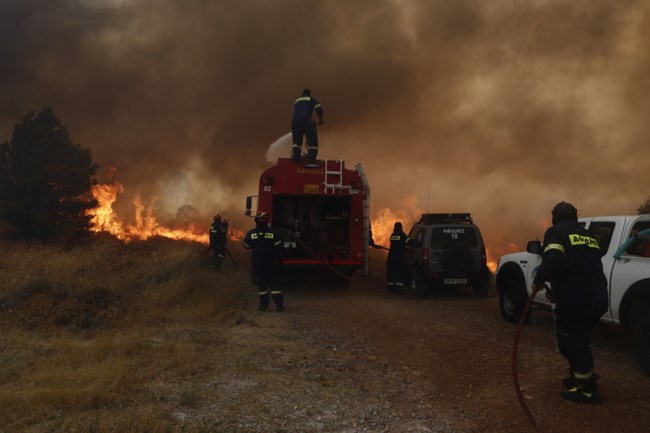 Οι άνεμοι δεν έχουν κοπάσει, με τις ριπές να είναι ικανές να φουντώσουν τις φλόγες και να δυναμώσουν το μέτωπο.