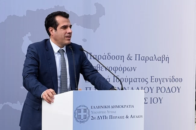 Ο Υπουργός Υγείας Θάνος Πλεύρης και η Αναπληρώτρια Υπουργός Υγείας Μίνα Γκάγκα παρέστησαν στην τελετή παράδοσης δύο ασθενοφόρων μικρού όγκου από το Ίδρυμα Ευγενίδου στην 2η ΔΥΠΕ για Ίο και Ρόδο.