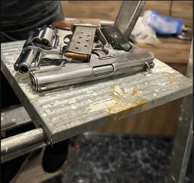 Τα όπλα, όπως φαίνεται στο βίντεο της ΕΛ.ΑΣ., ήταν κρυμμένα μέσα σε σκαμπό το οποίο ήταν γεμάτο με πλαστικά και άχυρα και χρειάστηκε οι αστυνομικοί να τα ανοίξουν. Επίσης βρέθηκε και μία ζακέτα, η οποία συνδέεται με εμπρησμό στον Ασπρόπυργο και μια τέτοια φορούσε ο συνοδηγός.