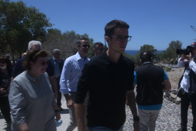Τον πρωθυπουργό συνόδευσαν στη Σαντορίνη, σήμερα, η σύζυγός του Μαρέβα Μητσοτάκη, αλλά και ο γιος του Κωνσταντίνος.
