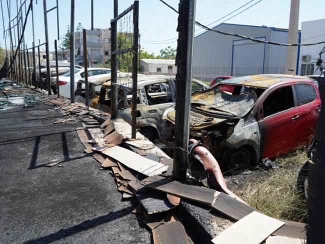 Η φωτιά που προκλήθηκε λίγο μετά τα μεσάνυχτα και ξεκίνησε από τον οικοπεδικό χώρο, επεκτάθηκε πολύ γρήγορα στην επιχείρηση με τα αυτοκίνητα.