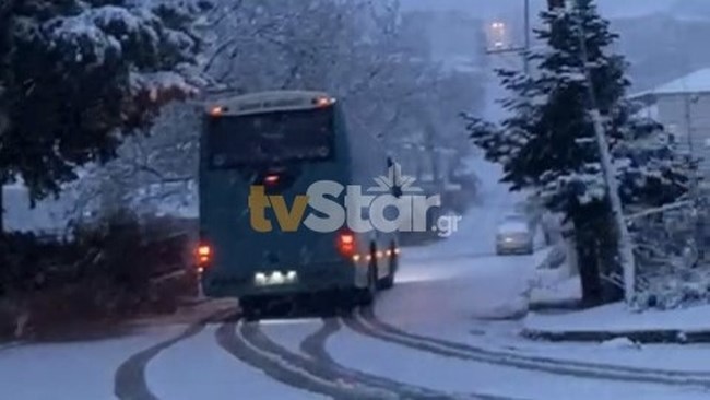 Ακινητοποιήθηκε σχολικό λεωφορείο στην Υπάτη λόγω χιονιού