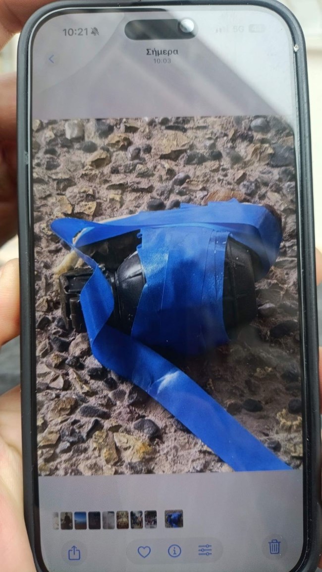 Η χειροβομβίδα βρέθηκε δίπλα σε μηχανή.