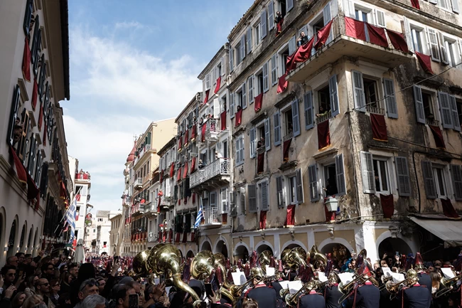 Χιλιάδες κόσμου βρέθηκαν στην καρδιά της Κέρκυρας για να παρακολουθήσουν το έθιμο. Αμέσως μετά, οι φιλαρμονικές με χαρούμενα εμβατήρια έδωσαν στους δρόμους της πόλης τον πρώτο αναστάσιμο ρυθμό.