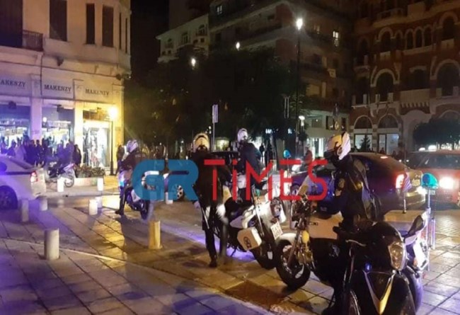 Αστυνομικοί με μηχανές και περιπολικά ζητούσαν από τους νέους να απομακρυνθούν από το σημείο, προειδοποιώντας τους παρευρισκόμενους με ηχητικό μήνυμα από τα μεγάφωνα των περιπολικών, πως για προληπτικούς λόγους απαγορεύεται ο συνωστισμός και πρέπει να απομακρυνθούν.