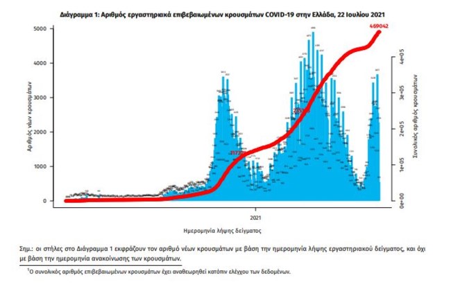 Εκ των 334 δειγμάτων με στελέχη ειδικού ενδιαφέροντος, τα 219 αφορούν στο στέλεχος Delta, 97 αφορούν στο Alpha, 16 αφορούν στο Βeta και 2 αφορούν στο Gamma.