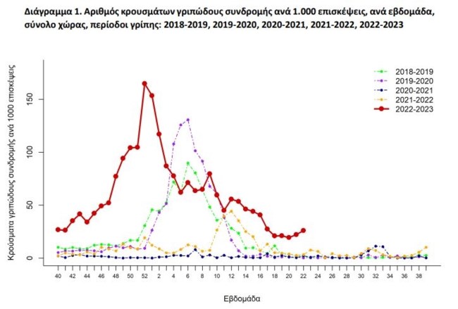 Γριπώδεις συνδρομές (ανεξαρτήτως παθογόνου): Καταγράφηκε αύξηση σε σχέση με την προηγούμενη εβδομάδα στην κοινότητα.