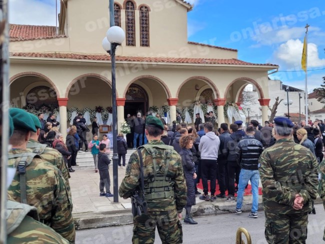 Όπως φαίνεται και στις παρακάτω εικόνες, στρατιωτικό άγημα βρέθηκε σήμερα στην εκκλησία της Λάρισας για να αποτίσει φόρο τιμής.