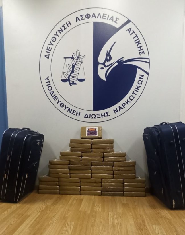Ο αλλοδαπός συνελήφθη έπειτα από ειδική αστυνομική επιχείρηση στο Λουτράκι Κορινθίας. Σε έρευνα που πραγματοποιήθηκε σε διαμέρισμα, που χρησιμοποιούσε ως χώρο απόκρυψης και διακίνησης ναρκωτικών, βρέθηκαν και κατασχέθηκαν 49 συσκευασίες, που έφεραν το λογότυπο "23" και περιείχαν κοκαΐνη, συνολικού βάρους 57 κιλών και 215 γραμμαρίων. Επίσης κατασχέθηκαν 225 ευρώ και 2 συσκευές κινητής τηλεφωνίας.