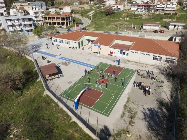 Επιπλέον, δημιουργήθηκε κλειστό γυμναστήριο το οποίο εξοπλίστηκε πλήρως, ενώ στον αύλειο χώρο του σχολείου ανακατασκευάστηκε το γήπεδο μπάσκετ-βόλλεϋ και δημιουργήθηκε παιδική χαρά προσφέροντας ένα περιβάλλον για ασφαλή άθληση, παιχνίδι και κοινωνικοποίηση.