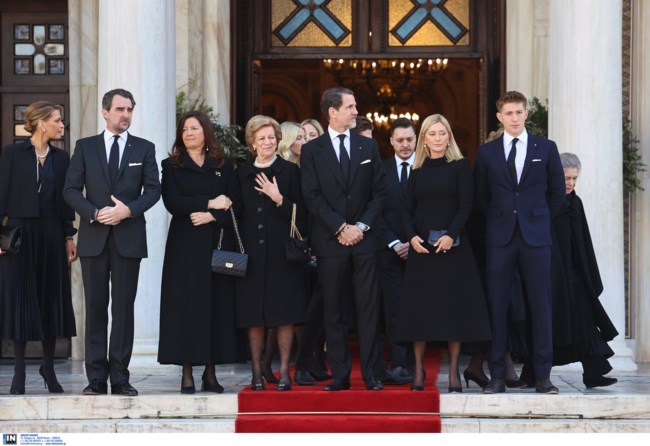 Πρώτες έφθασαν λίγο πριν από τις 11 το πρωί, ώρα τέλεσης του μνημοσύνου, οι αδερφές του τέως βασιλιά Κωνσταντίνου, Σοφία και Ειρήνη, στη συνέχεια η σύζυγός του, 'Αννα-Μαρία, και τα παιδιά τους Αλεξία, Παύλος, Νικόλαος, Φίλιππος και Θεοδώρα μετά συζύγων.