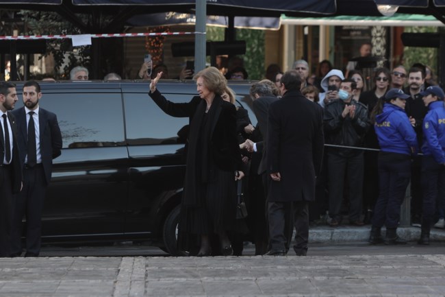 Εν μέσω χειροκροτημάτων από όσους είχαν συγκεντρωθεί έξω από τη Μητρόπλη έφτασε η αδερφή του τέως βασιλιά Κωνσταντίνου, Σοφία. Λίγο αργότερα στη Μητρόπολη έφτασαν ο υπουργός Ανάπτυξης, Άδωνις Γεωργιάδης, συνοδευόμενος από τη σύζυγό του, Ευγενία Μανωλίδου, η Φάνη Πάλη Πετραλιά, ο Νότης Μηταράκης, ο Αλέξανδρος Λυκουρέζος, ο Αλκιβιάδης Στεφανής, ο Μάκης Βορίδης και ο Αλέξανδρος Παπαδόγγονας.