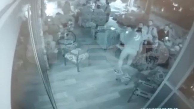Με καπέλο, τσαντάκι στη μέση και ένα άτομο να τον συγκρατεί, ο δράστης μπήκε στην καφετέρια και προχώρησε στα ενδότερα. Άτομα που στέκονταν πίσω τον κάλυπταν, αλλά η κάμερα ασφαλείας έπιασε την ανταλλαγή των πυροβολισμών.