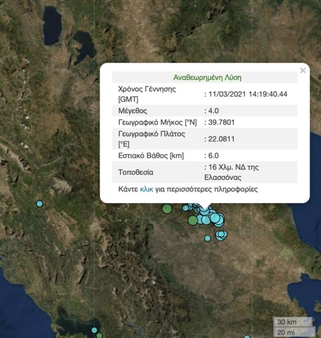 Νέα σεισμική δόνηση μεγέθους 4 Ρίχτερ σημειώθηκε στις 16:19 το μεσημέρι στην Ελασσόνα.