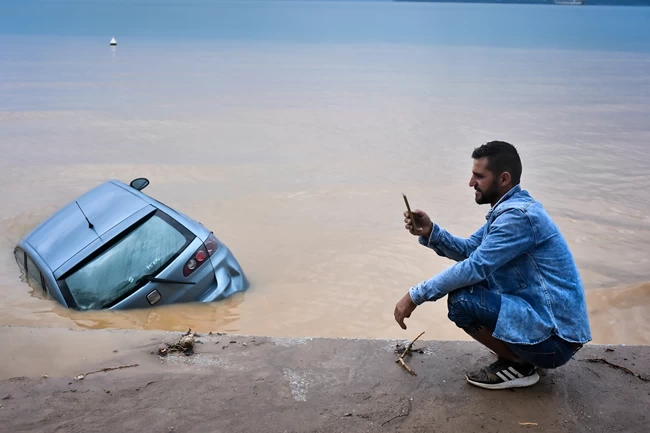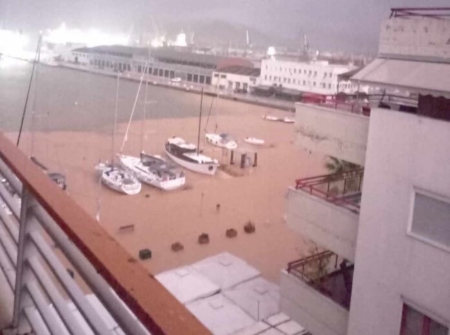 Πρωτοφανείς εικόνες καταγράφονται στο κέντρο του Βόλου. Η στάθμη της θάλασσας έχει φτάσει μέχρι την προβλήτα του λιμανιού και την παραλία της πόλης, η οποία έχει βυθιστεί στα λασπόνερα.