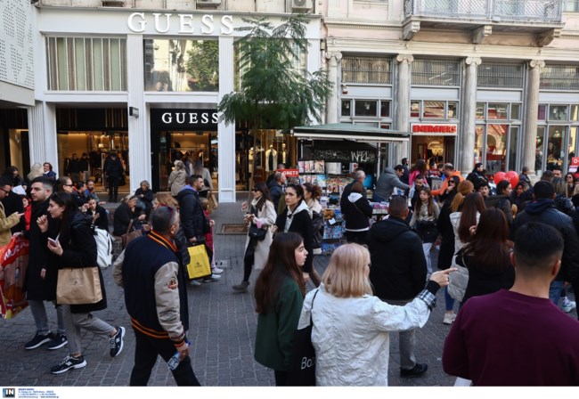 Το κέντρο της πρωτεύουσας πλημμύρισε κυριολεκτικά από Αθηναίους πολότες που έκαναν τις αγορές τους. Σε αυτούς προστίθενται και οι επισκέπτες της πόλης οι οποίοι απολαμβάνουν τη γιορτινή ατμόσφαιρα.