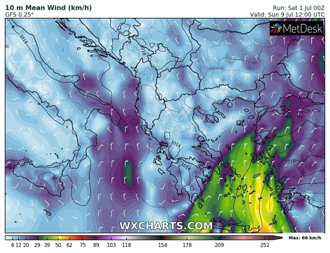 Χωρίς όμως να υπάρχουν τα χαρακτηριστικά που να υποδηλώνουν σε καμία περίπτωση ότι θα δούμε ακραίες τιμές, αλλά ένα τυπικό κύμα καύσωνα που έχουμε κάθε χρόνο τους θερινούς μήνες του έτους.